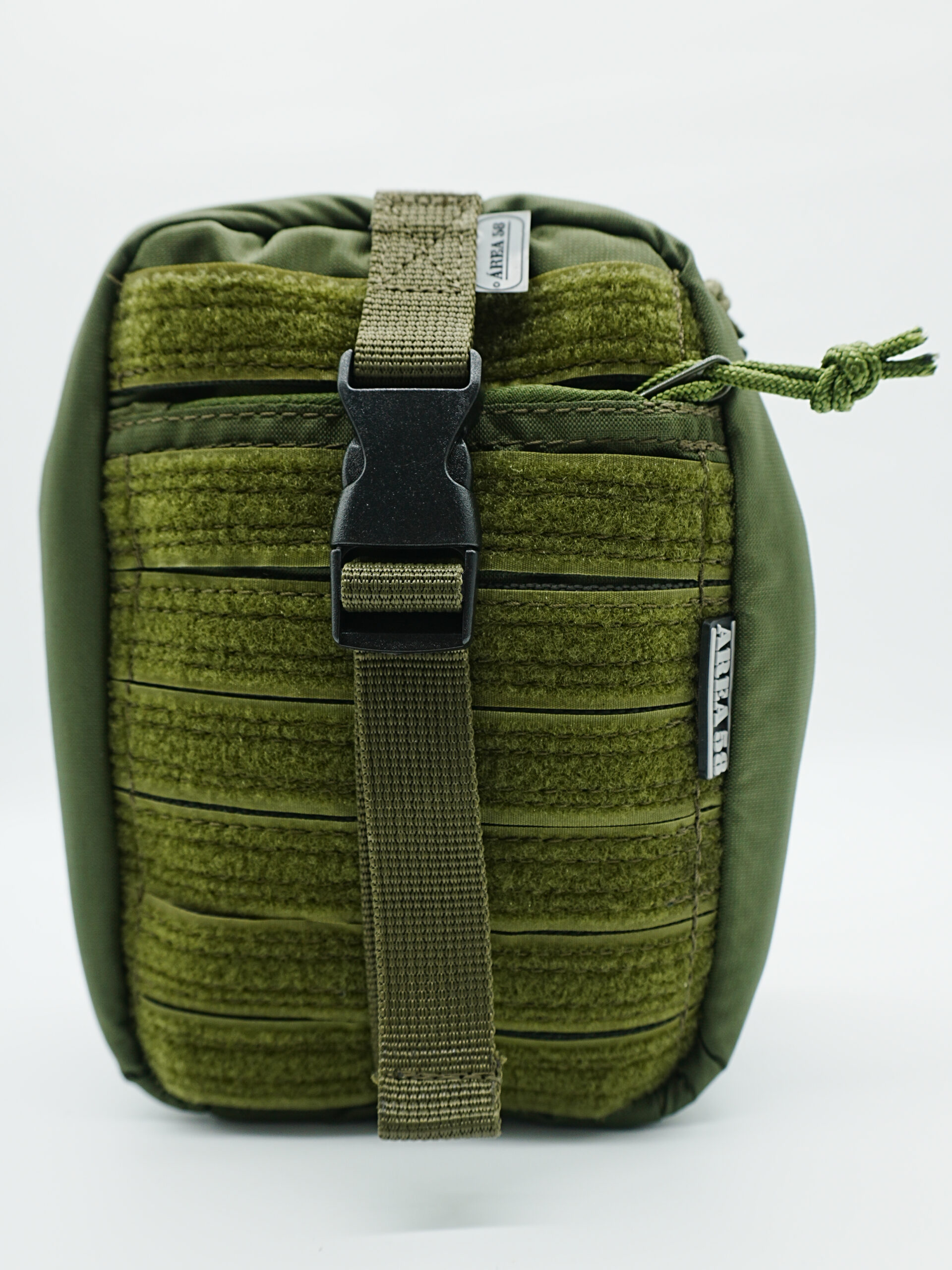 Sistema MOLLE integrado: Correas MOLLE en la parte posterior que permiten acoplar el bolso a chalecos tácticos, morrales, cinturones y cualquier equipo compatible. Lleva tus suministros médicos siempre contigo sin ocupar espacio interno.