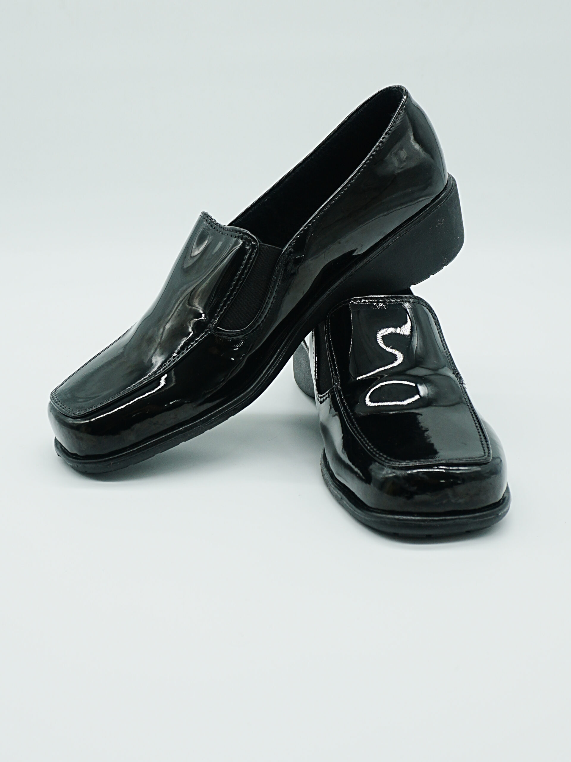 Zapato de charol estilo mocasín diseñado para uso con uniforme de gala militar y policial. Acabado en charol brillante que proporciona apariencia impecable y elegante. Construcción de calidad que combina comodidad y presentación profesional. Suela resistente con buen agarre. Diseño clásico reglamentario ideal para ceremonias, actos protocolarios y eventos institucionales. Fácil mantenimiento que conserva el brillo característico del charol.